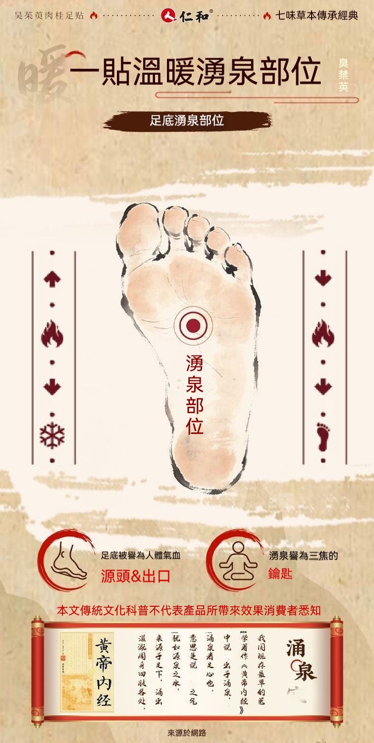 2分鐘前仁和吳茱萸肉桂足貼,七味草本溫和養身,一貼一撕整晚排濕,通排清暖,改善手腳冰涼與體重感,官方正品假一賠十,讓你輕鬆擁有好體質 - 「草本足貼 通排清暖」3入組 (3*30貼/盒共90貼,2年儲存期)-NT$ 998
