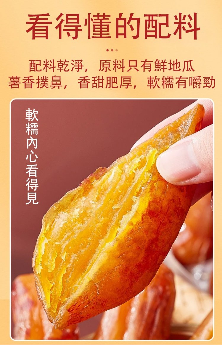 半小時前【限時下殺】臺農57地瓜乾 紅薯乾0脂肪肥軟糯香甜 無糖小香薯乾 倒蒸番薯地瓜乾即食代餐烘乾倒兒童孕婦老人休閒零食無添加 - 【聚會嗨吃裝】買三送四NT$1399